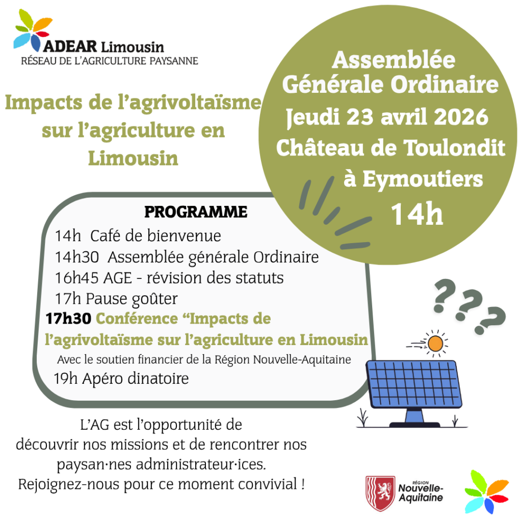 L’ADEAR Limousin est une association loi 1901, créée en 1991 à l’initiative de paysan·nes défendant une agriculture plus respectueuse de leur travail, de leur rôle, des attentes de la société et de l’environnement.